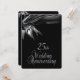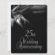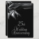 Cartes d'invitation uniques pour un anniversaire de mariage noir pour une réception / fête de 25 ans de mariage. Avant et arrière noir avec texte argenté au dos donnant un look élégant à cette invitation d'anniversaire de mariage gratuite.