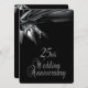 Cartes d'invitation uniques pour un anniversaire de mariage noir pour une réception / fête de 25 ans de mariage. Noir à l'avant et à l'arrière avec du texte argenté au dos donnant un aspect élégant à cette invitation d'anniversaire complémentaire.