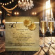 Une élégante invitation de fête d'anniversaire de mariage dans le style vintage avec des marguerites dorées sur un fond de toile de jute.