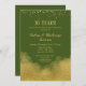 Une élégante invitation de fête d'anniversaire de mariage Olive Green et or avec poussière de confettis dorés en haut et décoration dorée en bas.