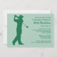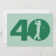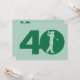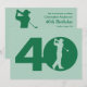 Vous pouvez personnaliser tout le texte à cette invitation orientée de fête d'anniversaire du quarantième golf. Vous pouvez changer le texte et le nombre sur l'avant et employer ceci pour un cinquantième, soixantième, soixante-dixième ou autre anniversaire. Les caractéristiques de conception une silhouette d'un golfeur balançant un club incité pour ressembler au zéro dans 40 sur l'avant. Vert forêt et menthe.