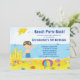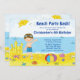 Mettez sur pied votre réception au bord de la piscine de plage outre de la droite avec notre invitation de fête d'anniversaire de coup de partie de plage d'été comportant une scène mignonne de plage avec un château de sable, le ballon de plage, les coquilles de mer, les bateaux à voile et un garçon de brune. Invitation unique pour votre fête d'anniversaire de garçon de natation. Personnalisez juste avec votre information et vous êtes tous placez pour aller ! Articles assortis comprenant des timbres-poste d'anniversaire, autocollants de faveur, merci vous carde et remercie que les autocollants sont également disponibles dans notre magasin.