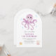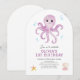Cette invitation est idéale pour le 1er anniversaire d'une fille, mais peut être adaptée pour n'importe quelle occasion. Caractéristiques d'une scène de pieuvre sous-marine mignonne dans un style graphique aquarelle et une typographie simple. Facile à personnaliser pour TOUT ÂGE avec tous vos détails de fête !