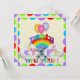 Un en vichy jaune vif et gai avec des points de couleur arc-en-ciel entourant la carte - un nuage bouffant avec des animaux plushie tout en s'amusant - le petit agneau peluché au milieu avec ses ballons de fête. Personnalisable et peut être utilisé pour la fête d'anniversaire de garçon ou de fille. Voici l'enveloppe correspondante :