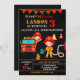 Invitation pour l'anniversaire des pompiers Invitation pour la fête des camions de pompiers. Jolie invitation pour la fête d'anniversaire du jeune pompier avec camion Red Fire, pompier brun garçons et du matériel de lutte contre l'incendie. Sonnez l'alarme et éditez simplement ce modèle facile à utiliser dans le menu Personnaliser.