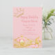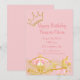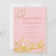 PRINCESS ROSE ET OR INVITATION D'ANNIVERSAIRE AVEC DESIGN DE TRANSPORT, DÉTAILS DE PARTIES SCINTILLANT D'OR.