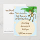 Invitation mignonne de fête d'anniversaire de singe faite à un arrière-plan bleu d'arrière - plan avec les graphiques adorables d'un singe pendant d'une vigne. Customisez tous les gisements des textes à vos besoins, avec le style des textes, la couleur, et la taille.