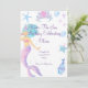 PLONGEZ DANS UNE ENCHANTEUSE AVENTURE SOUS-MARINE AVEC NOS INVITATIONS MERMAID À LA FÊTE D'ANNIVERSAIRE! CETTE CONCEPTION BLANCHE EST DOTÉE D'UNE GRACEFUL MERMAID ET DE CRÉATURES SOUS-MARINES COLORÉES.CUSTOMISEZ LE TEXTE AVEC VOS DÉTAILS DE PARTI.