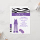 Commencez votre célébration outre de la droite avec ceci, invitation à la mode. Il est grand pour une partie de sleepover ! Il a un dessus barré par zèbre noir et blanc il y a une bande pourpre à travers le dessus. Il y a des paires adorables de pyjamas pourpres de l'aile gauche de l'invitation. Vérifiez les nombreuses autres conceptions et couleurs dans cette ligne aussi bien que merci des notes, des étiquettes, des chemises et des illustrations de more.© JW