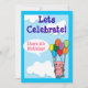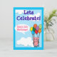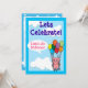 Une belle invitation pour l'anniversaire des enfants avec une illustration numérique de cochon rose utilisant un tas de ballons multicolores pour voler en hauteur dans le ciel bleu nuageux. Veuillez customiser tous les détails pour que l'invitation soit vraiment la vôtre.