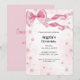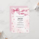Célébrez la journée spéciale de votre petite fille en style avec notre charmant Pink Bow Birthday Invitation! Cette invitation magnifiquement conçue présente un arrière - plan rose doux orné de fines étincelles, ajoutant une touche de magie et de fantaisie. Une jolie proue rose satinée trône élégamment au sommet, lui donnant une finale douce et féminine. Parfait pour les fêtes d'anniversaire sur le thème de la princesse, le conte de fées ou les fêtes d'anniversaire glamour, cette invitation donne le ton d'une fête amusante et inoubliable. Facile à personnaliser avec les détails de votre événement, il est à la fois adorable et élégant - comme votre fille d'anniversaire!
