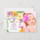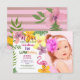 Invitation d'anniversaire d'été tropical colorée, lumineuse, adorable avec photo personnalisée et fleurs aquarelles.