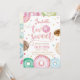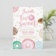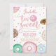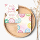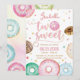 Le design présente des donuts colorés avec des paillettes et des confettis de couleurs pastel. C'est une invitation d'anniversaire parfaite pour une fille de 2 ans ayant une fête sur le thème des donuts ou des douceurs.
