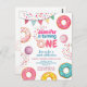 Cette invitation d'anniversaire sucrée présente mes donuts dessinés à la main dans des couleurs vives avec des confettis.
