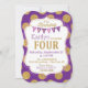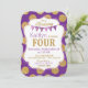La copie audacieuse de point de parties scintillantes-regard de pourpre et d'or avec la bannière d'anniversaire signent plus d'un design de carte moderne de inscription d'invitation d'anniversaire de l'or quatre.