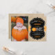 Invitation citrouille premier anniversaire avec photo personnalisée, orange et arrière - plan burlap. Pour plus de personnalisation, cliquez sur le bouton "Customiser" et utilisez notre outil de conception pour modifier ce modèle.