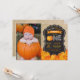 Invitation citrouille premier anniversaire avec photo personnalisée, orange et arrière - plan burlap. Pour plus de personnalisation, cliquez sur le bouton "Customiser" et utilisez notre outil de conception pour modifier ce modèle.