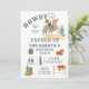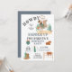 Une invitation de premier anniversaire "saddle up" mignonne et fantaisiste cowboy sauvage ouest en terre cuite brun et blues pour un garçon, avec l'équipement de cowboy occidental et les animaux de ranch. Selle, pilon, chevaux, cactus et lasso. Tout ce dont un cowboy a besoin. Vous pouvez customiser ceci pour n'importe quel âge de 1 à environ 8 ans, il suffit d'ajouter le numéro devant le mot anniversaire. L'arrière de l'invitation est un bleu gris fumé solide qui correspond au gris bleu sur l'avant.