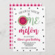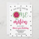 Un dans une Melon Watermelon première invitation de fête d'anniversaire avec fond vert melon.
