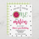 Un dans une Melon Watermelon première invitation de fête d'anniversaire avec fond vert melon.