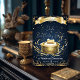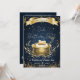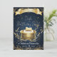 Célébrez l'anniversaire de votre chien adoré avec style grâce à cette invitation de fête pour animal de compagnie sophistiquée, mettant en vedette un bol pour chien gravé doré avec un biscuit en forme d'os, sur fond de filigrane doré et marine. Parfait pour les amateurs de chiens organisant des fêtes d'anniversaire pour animaux de compagnie haut de gamme et des célébrations canines raffinées.
