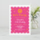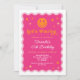 Invitation d'anniversaire de fille avec cadre ondulé visage souriant rose et orange.