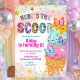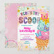 Invitation d'anniversaire fille pastels et paillettes glace, Invitation d'anniversaire Here's The Scoop, Invitation modifiable douce dessert fête d'enfants