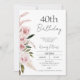 Invitation d'anniversaire florale Boho rose moderne Elégant et simple boho thème toute invitation d'anniversaire d'âge avec un arrangement floral broussailleux avec gazon de pampas sur le côté et une disposition de texte moderne.