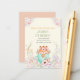 Invitation d'anniversaire de renard mignon dans une tasse avec des détails floraux magiques, une verdure douce et une esthétique boisée confortable. Parfait pour une célébration fantaisiste et adorable. Personnalisez instantanément et imprimez ou téléchargez.