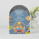 Cartes d'invitation d'anniversaire de voiture de course ! Parfaites pour les fêtes d'enfants, ces invitations colorées et personnalisables présentent une scène de piste de course amusante, rendant votre célébration mémorable. Idéal pour les jeunes fans de course