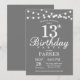 13e Invitation à l'anniversaire avec lumières à cordes. Arrière - plan gris.Anniversaire enfant. Invitation Anniversaire garçon ou fille-fille. 13e 15e 16e 18e 20e 21e 30e 40e 50e 60e 70e 80e 90e 100e, n'importe quel âge.