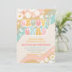 Célébrez dans le style avec cette invitation d'anniversaire rétro groovy avec des rayures pastel ondulées, des marguerites ludiques, des étoiles, des cœurs et des éclairs. Parfait pour un premier anniversaire ou n'importe quelle fête amusante, ce design vibrant capture la paix, l'amour et le charme rétro. Personnalisez avec les détails de votre événement pour créer un souvenir unique que les invités adoreront. Idéal pour les célébrations sur le thème rétro, les fêtes hippies ou les anniversaires de enfants fantaisistes.