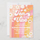 Célébrez avec style grâce à cette invitation d'anniversaire rétro groovy avec des couleurs vibrantes de l'arc-en-ciel, des marguerites ludiques, des papillons, des signes de paix et des accents de visage souriant. Parfaite pour une fête d'anniversaire de 10 ans, ce design amusant et coloré donne le ton pour la paix, l'amour et les bonnes vibrations. Personnalisez avec les détails de votre fête pour créer une invitation unique que vos invités adoreront. Idéale pour les célébrations sur le thème rétro, bohème et groovy, cette invitation ajoute une touche joyeuse à tout anniversaire marquant.