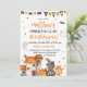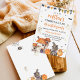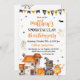 L'invitation présente de mignons fantômes, chauves-souris, un citrouille, et un chat avec des bannières et des étoiles dans l'arrière - plan. Ce design est parfait pour une fête d'anniversaire sur le thème de l'Halloween.