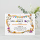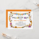 Jolie invitation d'anniversaire Halloween avec un cadre Halloween composé de fantômes, citrouilles, chapeaux de sorcières, étoiles et bonbons, sur un fond blanc classique avec un modèle d'invitation facile à personnaliser.