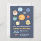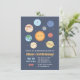 Une invitation d'anniversaire colorée et mignonne sur le thème de l'espace avec des illustrations adorables du soleil et des planètes du système solaire - Mercure, Vénus, Terre, Mars, Jupiter, Saturne, Uranus et Neptune. Ce sera une fête d'anniversaire astronomique ! Personnalisez facilement avec les détails de votre fête.