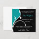 Jolie invitation à la fête carré faite en noir et turquoise avec une belle décoration Fleur blanche. Customisez le texte sur le devant de cette carte pour la personnaliser, pour vos besoins de fête. Cette invitation de taille nécessite un affranchissement supplémentaire.