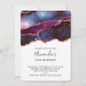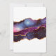 Une invitation d'anniversaire avec un design abstrait avec des couches bleues et violettes avec un ruban de faux or à l'intérieur.