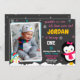 Invitation d'anniversaire de pingouin Invitation de vacances hiver onederland 1ère invitation d'anniversaire. Accompagnez-vous pour vous amuser avec cette invitation à thème Penguin d'hiver avec de mignons petits pingouins et quelques flocons de neige autour. Modifiez simplement ce modèle facile à utiliser dans le menu Personnaliser pour le rendre spécial.