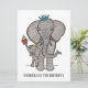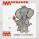 A sweet illustration of an elphant and baby. The baby is holding up a cupcake covered in sprinkles and they are both wearing crowns.