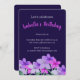 Design floral lilas féminin et rose mignon avec un arrière - plan violet bleu. Le texte personnalisable vous permet d'ajouter vos informations. Cette invitation peut être utilisée pour une remise de diplômes, un anniversaire ou toute fête surprise.