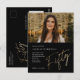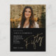 Invitation moderne et minimaliste pour les 50 ans avec un numéro de feuille d'or faux stylisé et écriture manuscrite Fifty et les détails de votre fête dans une police serif classique sur fond noir, simple et élégant, excellente invitation d'anniversaire surprise pour hommes et femmes pour cet événement marquant. La couleur de fond noir peut être changée à n'importe quelle couleur de votre choix.