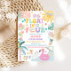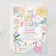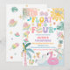 Faites sensation avec cette invitation d'anniversaire vibrante et tropicale pour une fête au bord de la piscine, parfaite pour une célébration estivale ! Avec des illustrations ludiques de flotteurs en forme de flamant rose et de cygne, de palmiers, de glaces, de sucettes et d'ambiance ensoleillée de plage, ce design est idéal pour l'anniversaire d'un enfant. La mise en page colorée donne le ton pour une journée remplie de plaisir au bord de la piscine, tandis que le texte personnalisable garantit que chaque détail est adapté à votre événement. Un choix joyeux et accrocheur qui ravira les invités et créera de l'excitation pour le grand jour.