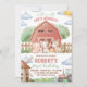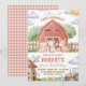 Tous les animaux de la fête sont invités à célébrer avec cette invitation "Fête à la ferme". Avec une grange rouge, des animaux de ferme aquarellés adorables et un tracteur. Parfait pour le premier anniversaire d'un garçon sur le thème de la ferme. Personnalisez facilement avec le nom de votre enfant et les détails de l'événement.