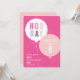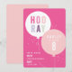 Cette invitation d'anniversaire moderne pour enfants présente un bouquet de ballons avec un texte HOORAY rose et violet de style festif. Le texte personnalisable en blanc et les détails d'âge à l'intérieur du ballon le rendent amusant, tout en étant moderne et frais. La palette de couleurs rose et violet le rend parfait pour une fête d'anniversaire de fille. Dos de couleur coordonnée. Des articles de fête supplémentaires, comme des tampons, des cartes de remerciement et des décorations de fête peuvent être trouvés dans les collections de bouquets de ballons de Stacey Meacham.