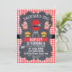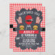 Vous cherchez une invitation d'anniversaire en tableau noir pour une fête d'anniversaire d'enfant ? Ce modèle pourrait être ce dont vous avez besoin. Tout le texte est modifiable, ce qui en fait un modèle très flexible. L'avant de l'invitation comprend un cadre en damier scanné, une ceinture noire et un motif en plaid rouge. Convient à une variété d'âges, cette invitation d'anniversaire de barbecue est prête à être personnalisée. Ce design est idéal pour un jardin d'été barbecue.