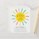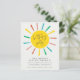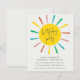 Une invitation d'anniversaire pour enfants amusante et économique avec un soleil arc-en-ciel et un script moderne. Cliquez sur le bouton modifier pour personnaliser ce design avec vos détails.