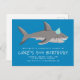 Cette invitation pour une fête d'anniversaire d'enfants amusante présente une illustration de requin avec un fond bleu audacieux et des polices décontractées et en détresse. C'est un excellent choix pour une fête d'anniversaire de garçon. Voir la collection ci-dessous pour d'autres articles coordonnés !