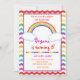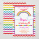 Invitation d'anniversaire amusante pour filles à chevron arc-en-ciel. Choisissez de la personnaliser pour la rendre unique.