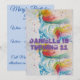 Invitation d'anniversaire à l'aquarelle représentant une licorne. Conçue à partir de ma peinture originale à l'aquarelle.